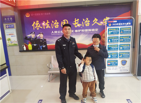 孩子“失踪”近4个小时,派出所接警后安排警力立即在辖区巡逻寻找,另安排警力查看周边监控寻找。寻找至晚上6时许,派出所值班民警接到群众报警,称在华瑞新城小区门卫处,保安吴师傅捡到一个迷路男孩,民警立即赶到小区。