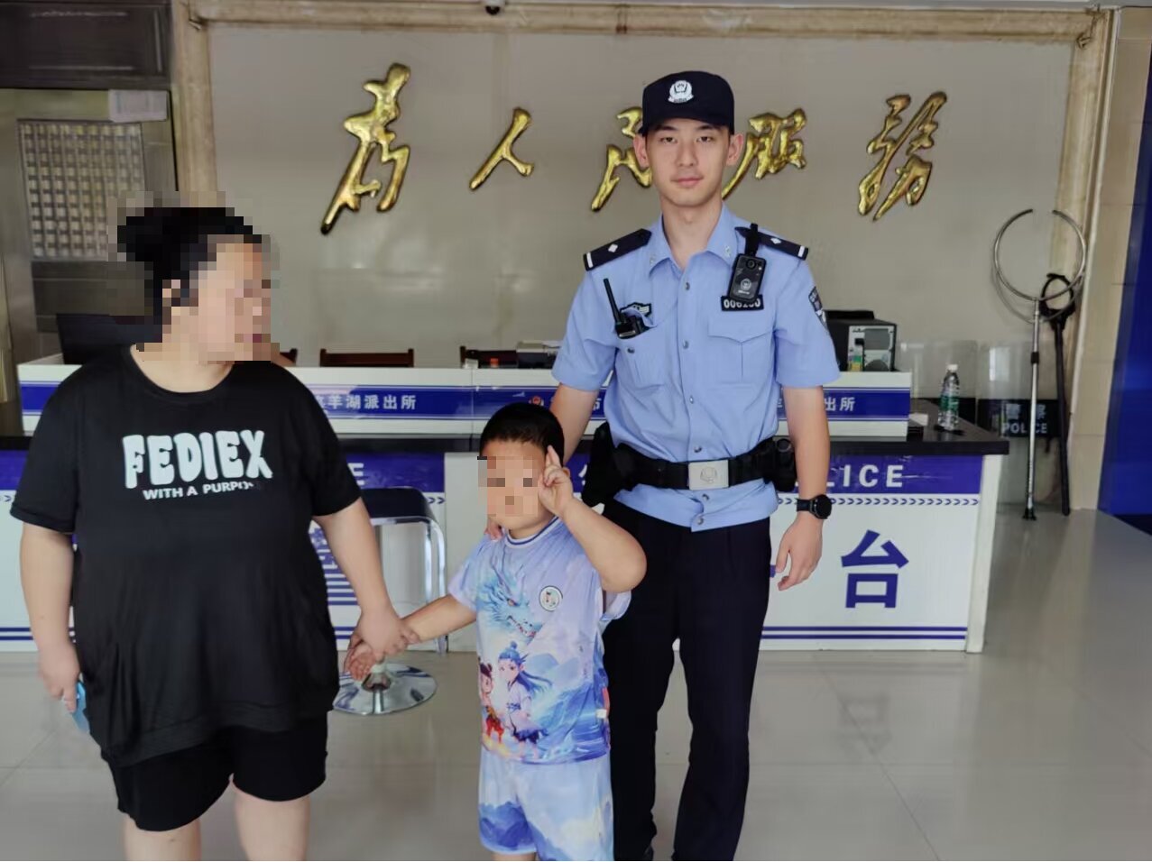 天气炎热,民警决定先将小男孩带回派出所照顾。在所里,民警陪着小男孩折纸飞机,努力缓解小男孩急切要找家人的心情,慢慢地引导小男孩说出自己的身份信息。功夫不负有心人,在小男孩含糊的发音中捕捉到了蛛丝马迹,经反复比对核实,终于找到了小男孩及其家人的信息,小男孩叫昊昊(化名),今年5岁。