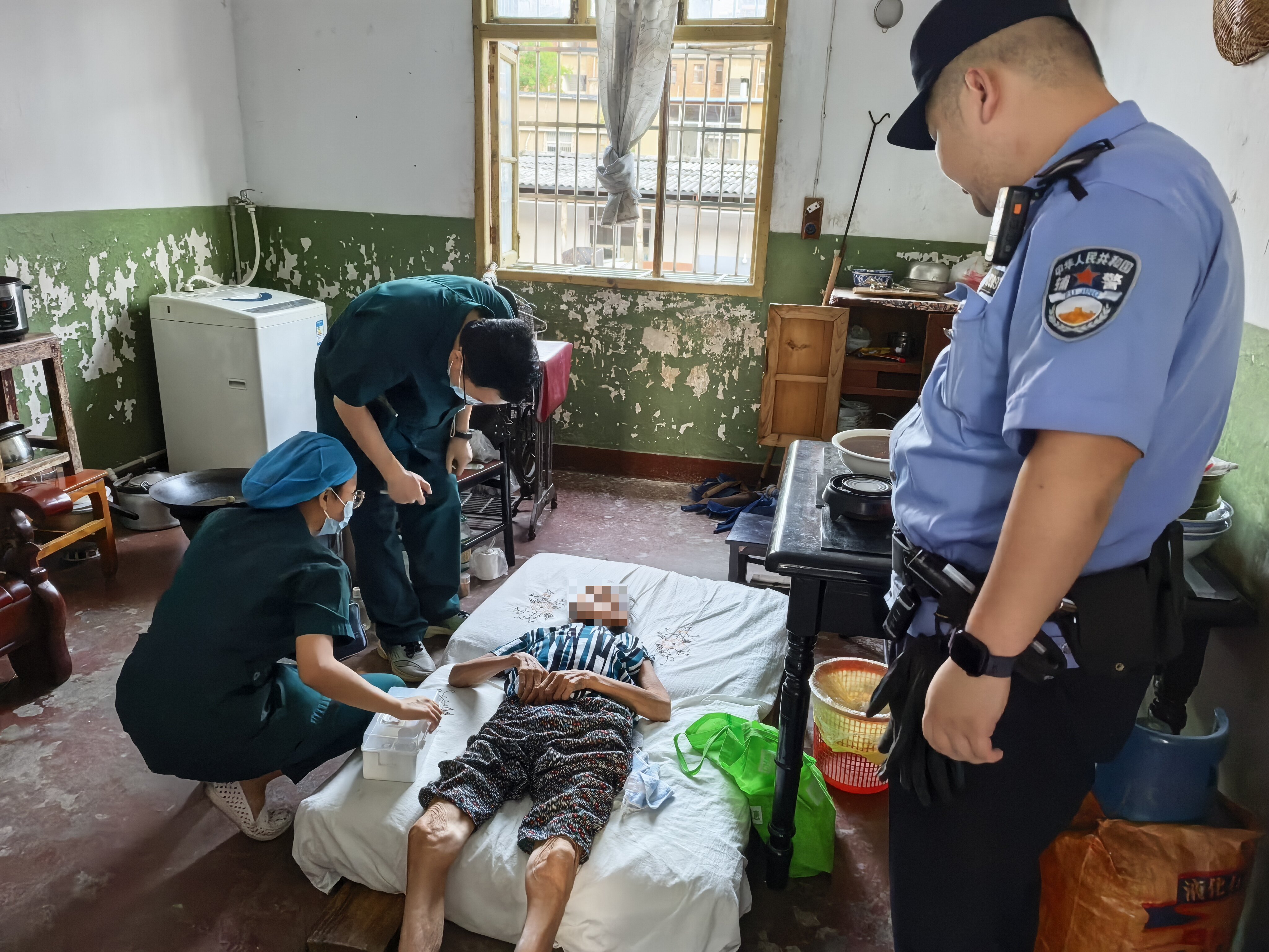 随后,民警发现老人家中炎热,只有一个吊扇在运转,没有什么风力,猜测老人应该是因中暑导致的生病。“婆婆,去医院检查一下身体,这样我们也放心。”考虑到老人的身体状况,民警一边用扇子给老人扇风,一边暖心地劝说老人到医院就医。