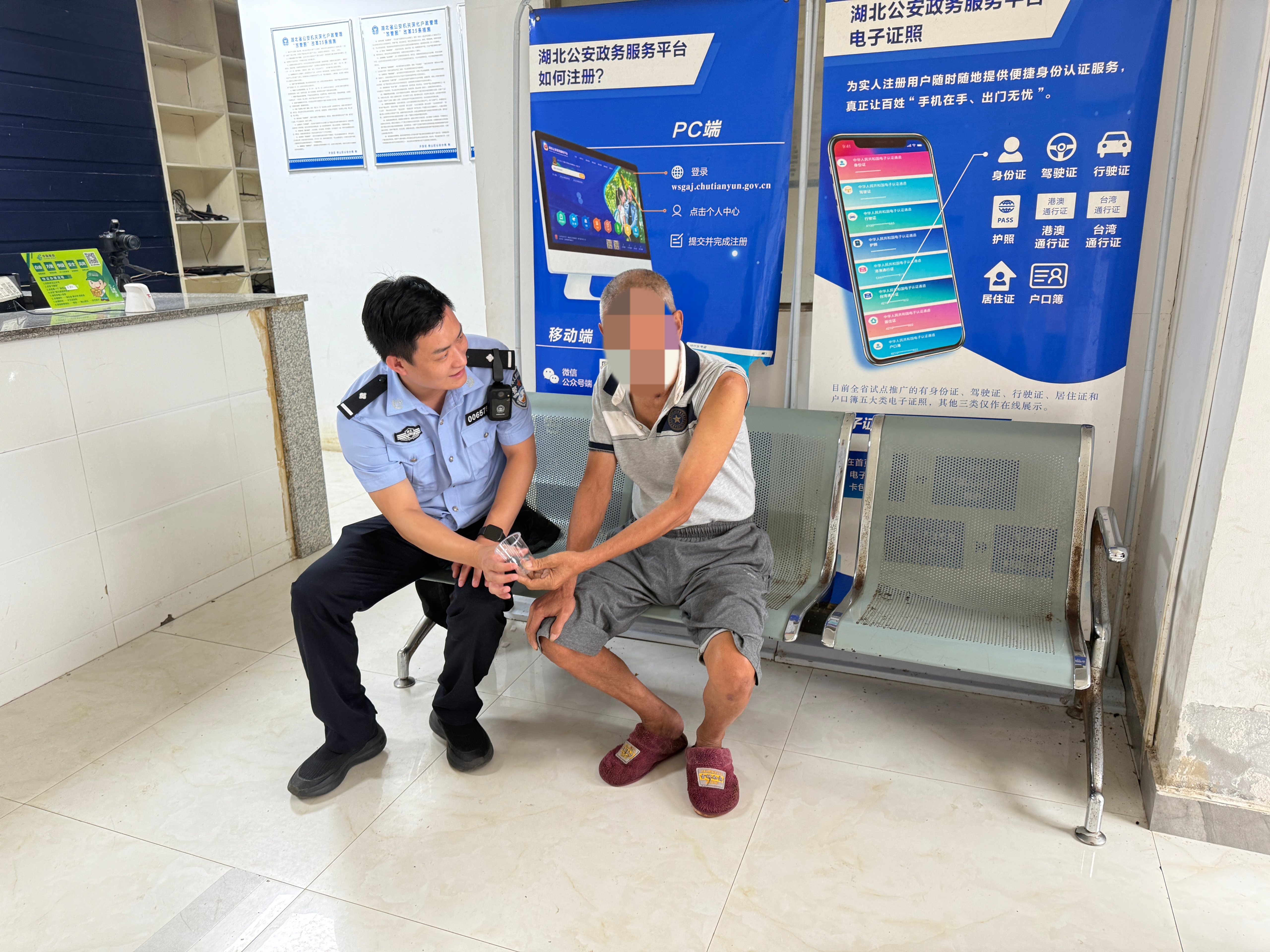 “老人家,先喝口水!”民警吴远童将老人安顿在大厅的椅子上,随后给其端来一杯水解渴。因不知老人走失了多久,担心他饿着,民警还关切地询问:“早上吃饭了吗?”得知老人吃过了,民警才稍稍放心。