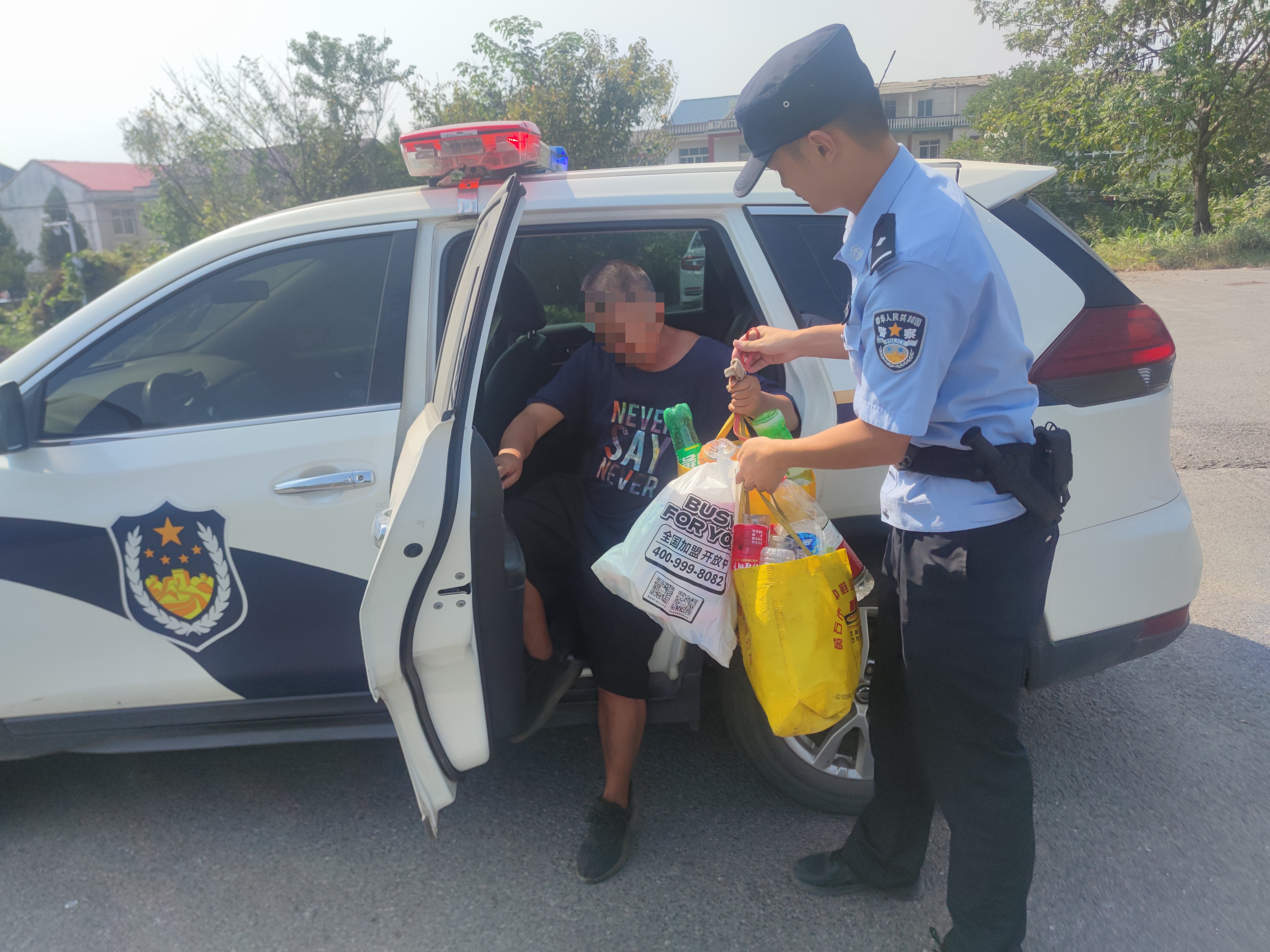 “这是逆行,很危险,我们开车送你回去。”民警帮助卫师傅将身上的袋子卸下放进警车里。因卫师傅说不清家的具体位置,民警与其家属取得了联系,得知了卫师傅家的具体位置,随后将卫师傅安全送回家中。