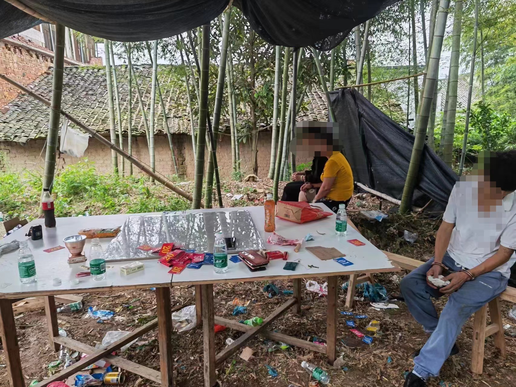 接警后,该所社区民警黎智文带队,5名民辅警一行直接向所指地点奔赴。在一片竹林外围,民警透过一个竹篱笆发现,在荫凉的竹子下边,几名男女围坐在一个简易桌子旁边。4名参赌人员涉嫌以“押宝”的方式进行赌博。民辅警当场控制住参赌人员,并扣押赌资2000余元,以及相关赌具若干。