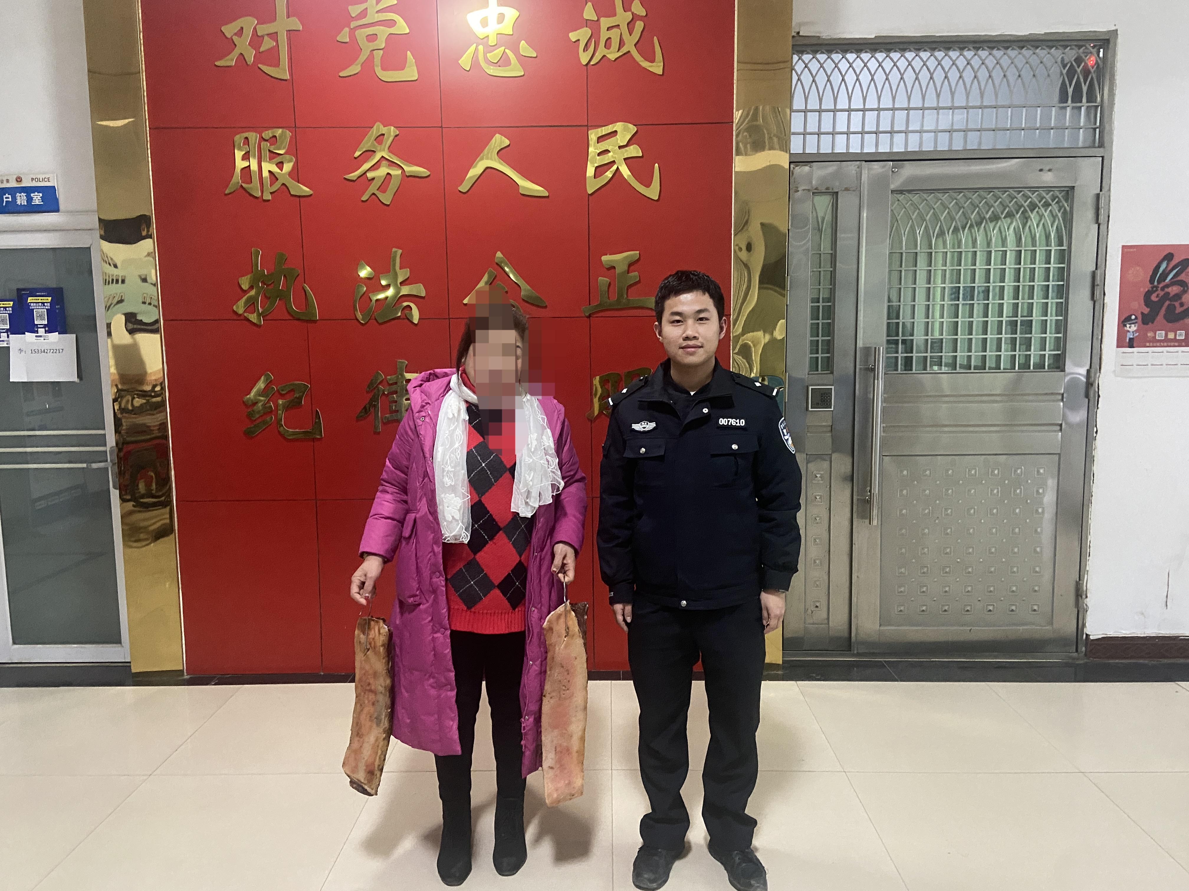 “感谢你们!”案件破获后,柯女士提着失而复得的腊肉时,开心不已,对民警认真负责的工作态度表示由衷地感谢。