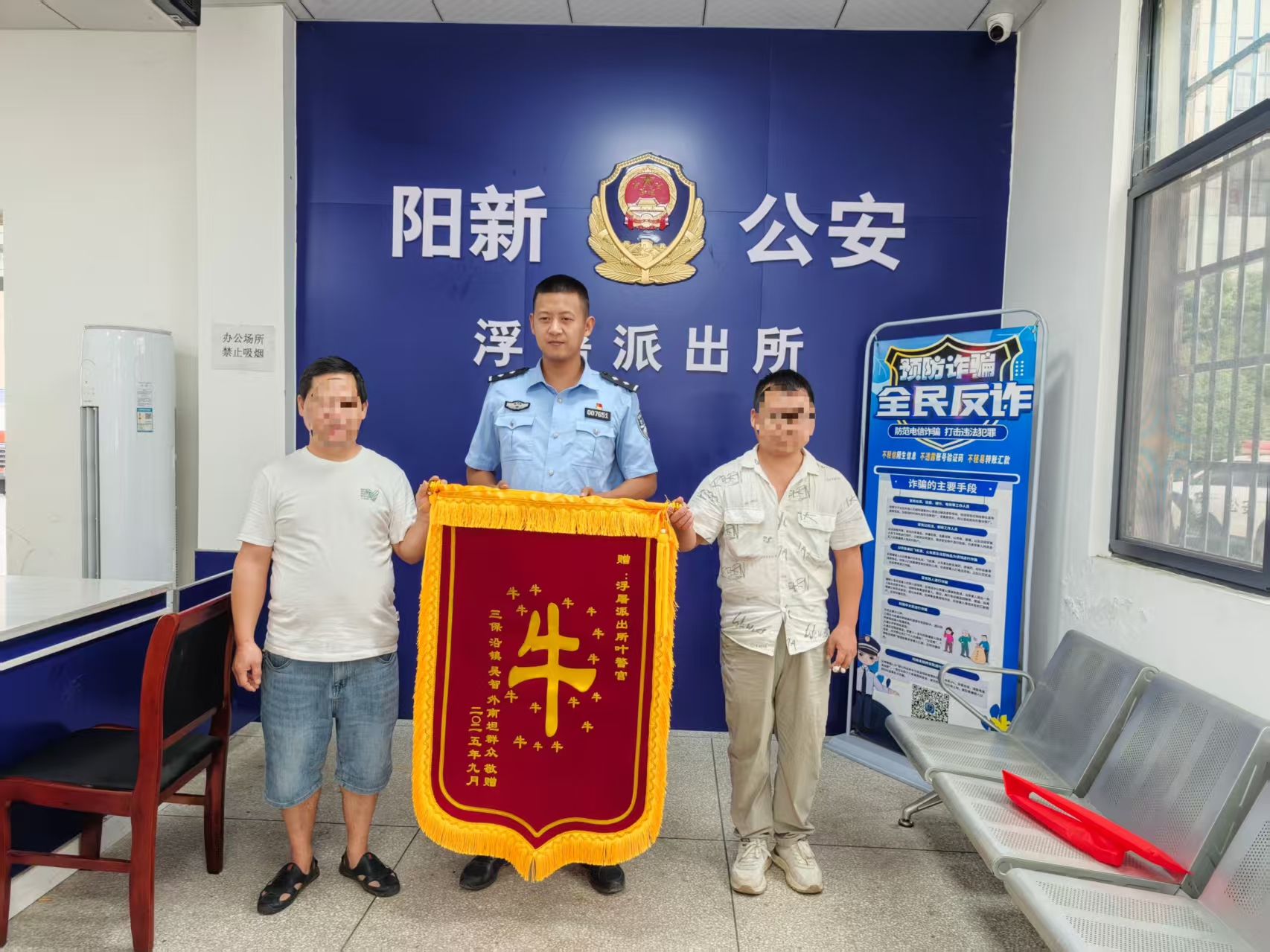 (通讯员 熊静怡 柯金玲)“牛!阳新民警真牛!”9月18日,阳新县公安局浮屠派出所内,三宝村村民代表送来一面印有16个“牛”字的锦旗,感谢民警成功破获系列耕牛盗窃案,为11名受害群众挽回经济损失。