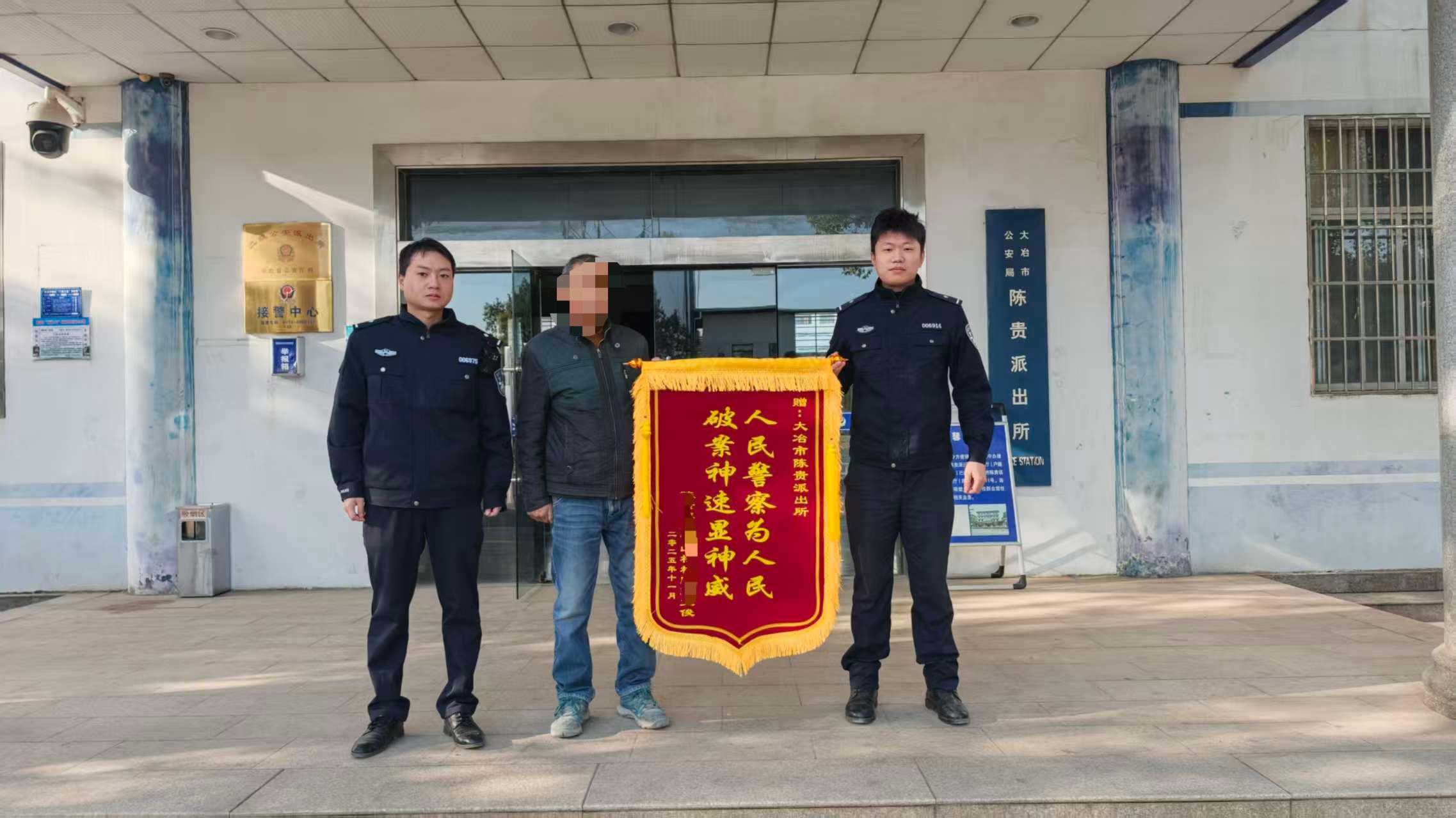 (通讯员 万雅丽)“感谢民警为我追回了这10万血汗钱!”11月28日,群众张先生将一面锦旗送至大冶市公安局陈贵派出所民警手中。