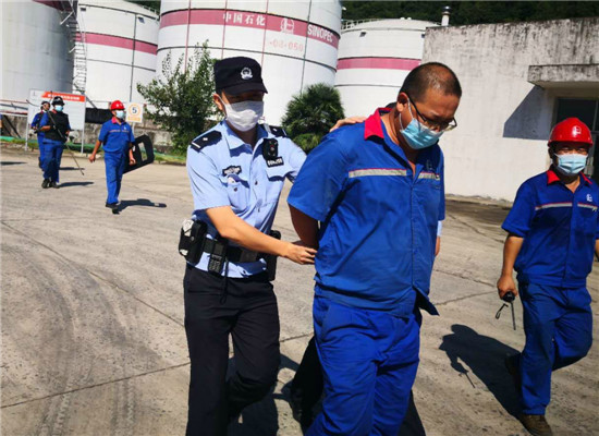 黄思湾派出所接警后,迅速组织警力、携带装备赶至油库,不法人员看到警车后立刻逃跑,民警快速反应,与油库工作人员迅速锁定不法分子具体位置,形成处置队形。民警为战斗处置小组,分成两组战斗单元,通过武力震慑,运用警棍盾牌、防爆叉等处置,将不法人员控制带离。