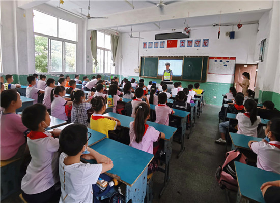 课后,交警大队民警采用问答方式与学生互动,并引导学生向家长宣传交通法规,发挥小手拉大手的作用,将交通安全知识带回家,提醒家长抵制交通陋习,做文明的交通参与者。