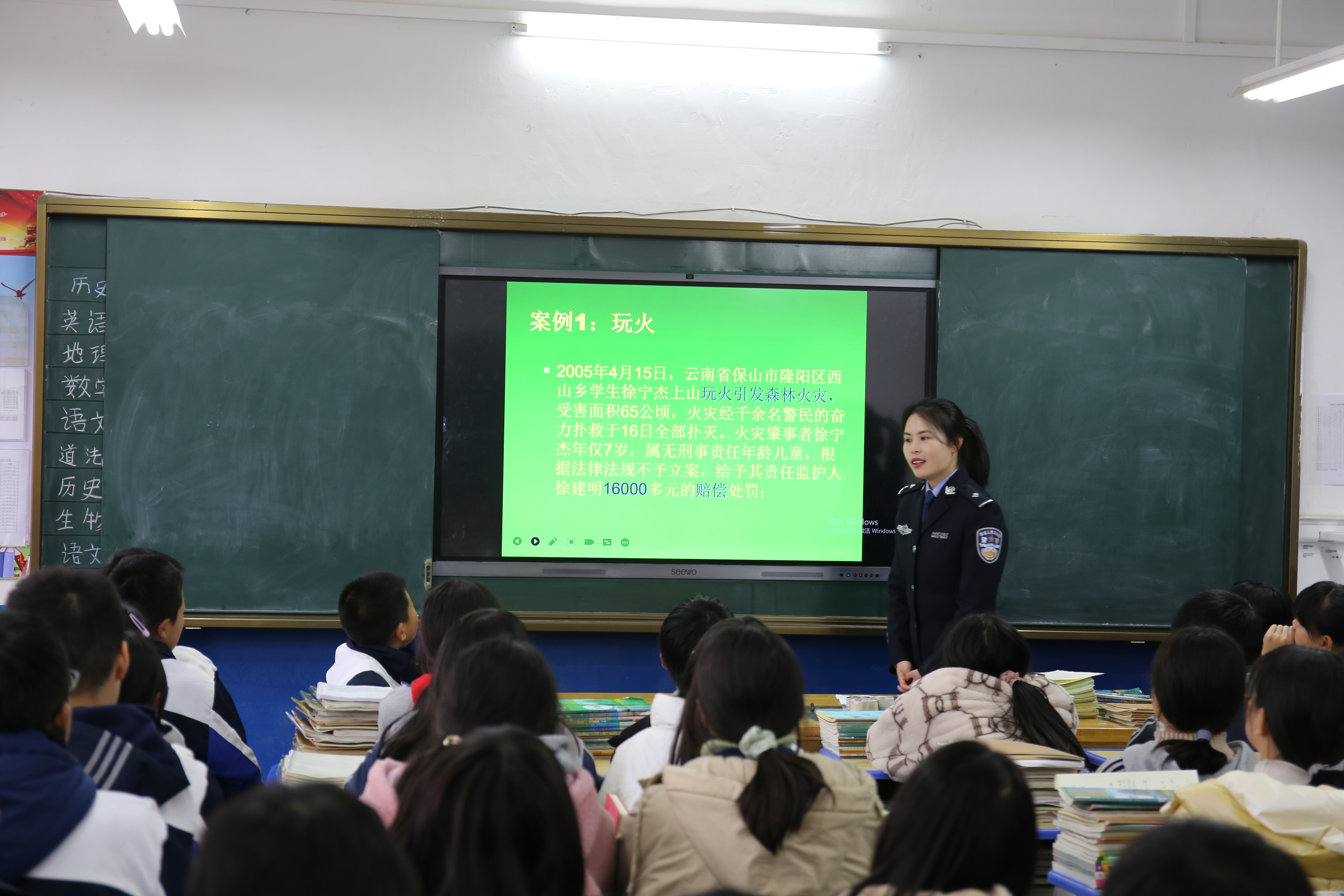 活动前,民警精心制作了森林防火课件,在课堂上,民警通过讲解森林防火知识,生动形象地展示了森林与人类的关系和森林火灾的危害;通过宣讲森林火灾典型案例及法律责任,同学们了解了如何预防森林火灾以及引发森林火灾的法律后果;通过播放森林防火小视频,同学们明白了火场紧急避险的知识。
