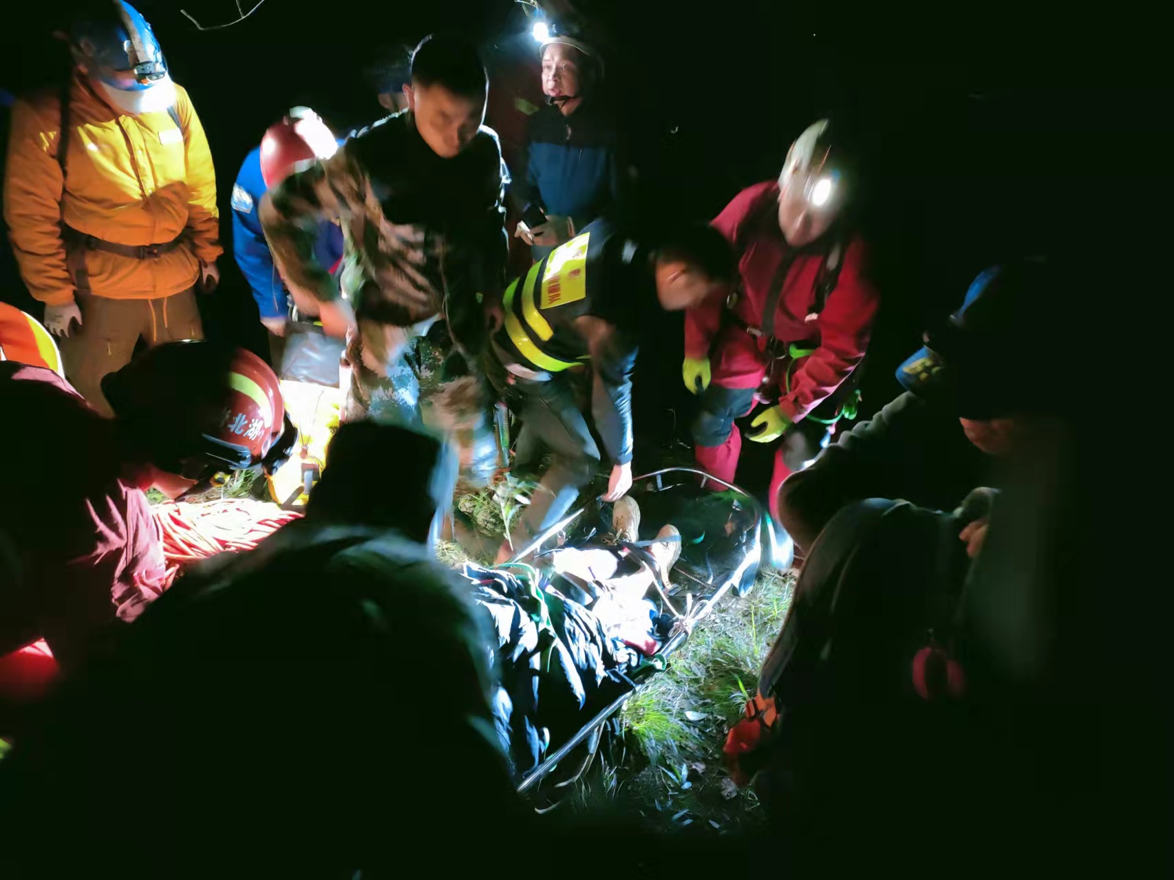 在确认12人中只有两人受伤后,救援人员协助120救护人员将受伤者抬上担架,一路护送被困人员安全下山。