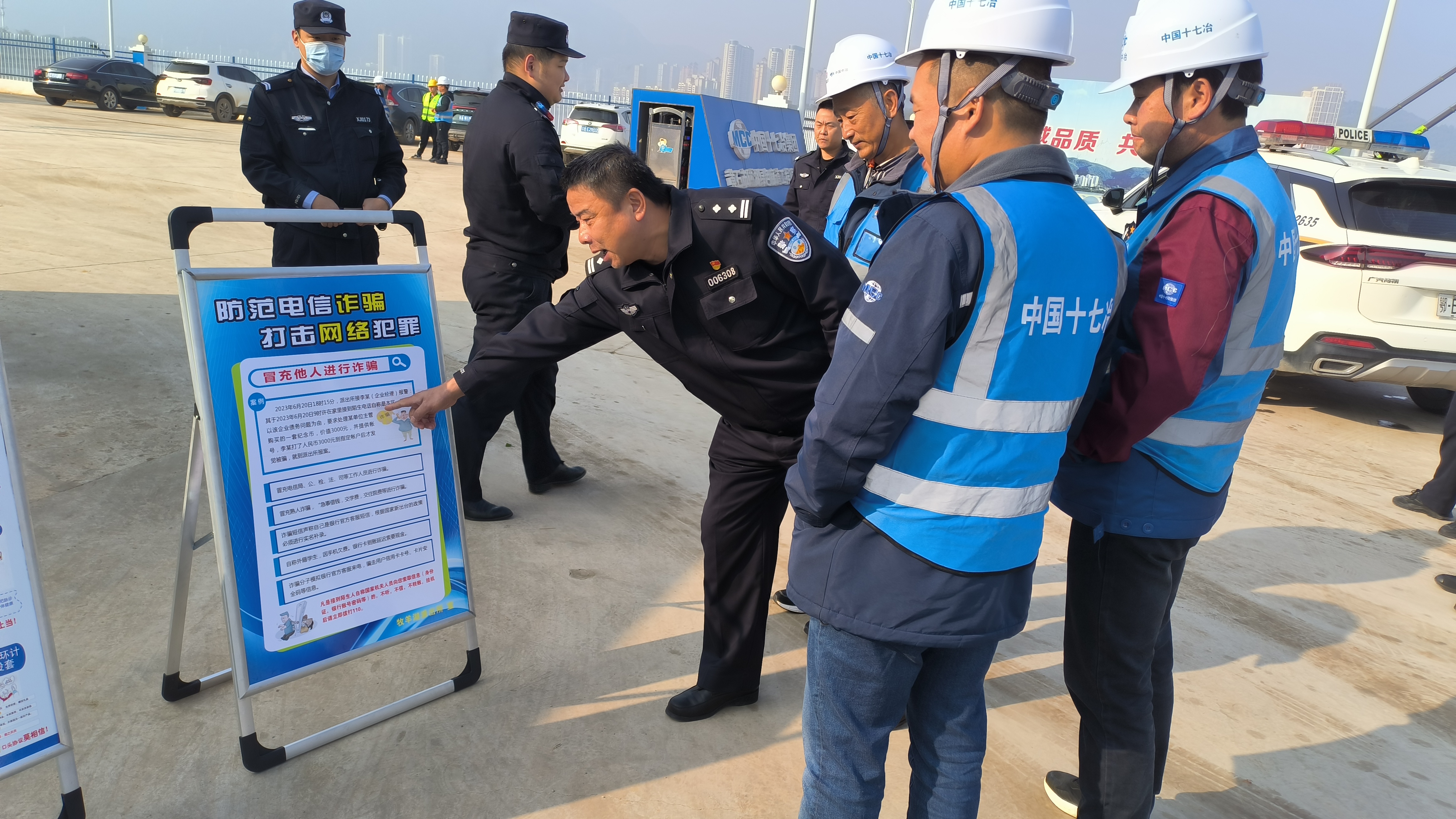 (通讯员熊静怡 李丹)11月14日,黄石市公安局西塞山公安分局牧羊湖派出所民警深入辖区“黄石磁湖绿色廊道工程”工地开展反诈宣传活动。