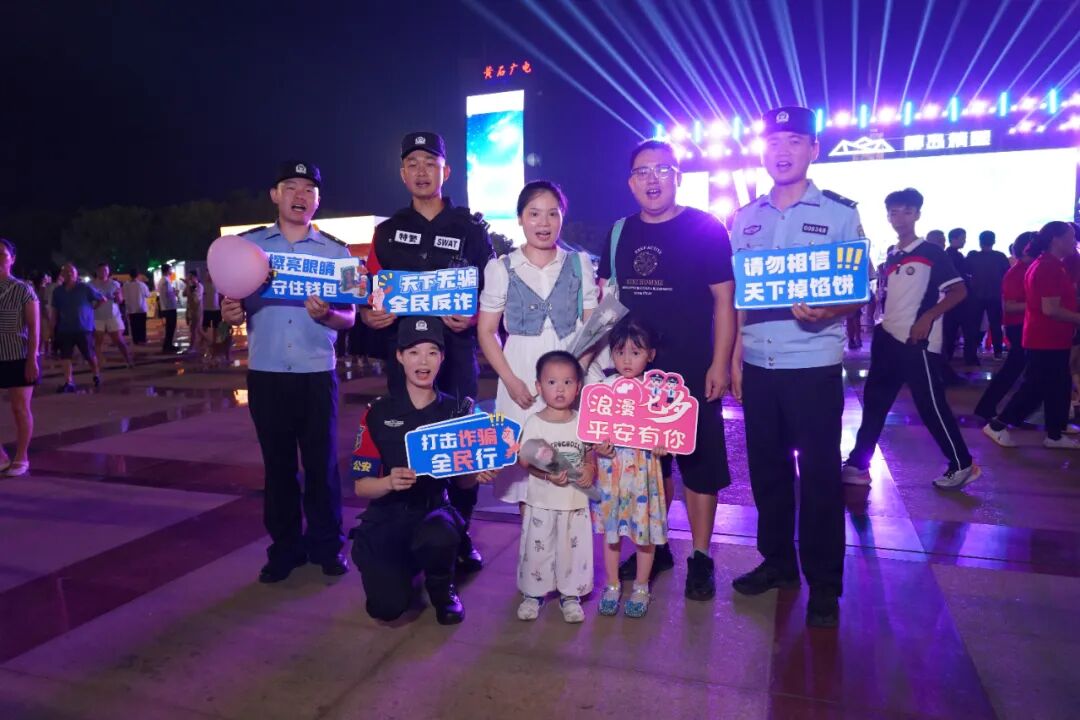 下陆区分局联合反恐特警支队在人民广场开展反诈互动送鲜花活动