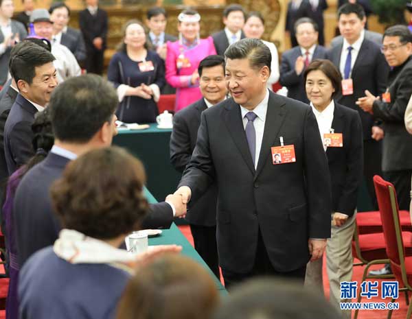 3月5日,中共中央总书记、国家主席、中央军委主席习近平参加十三届全国人大二次会议内蒙古代表团的审议。 新华社记者 黄敬文 摄