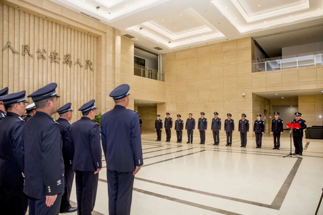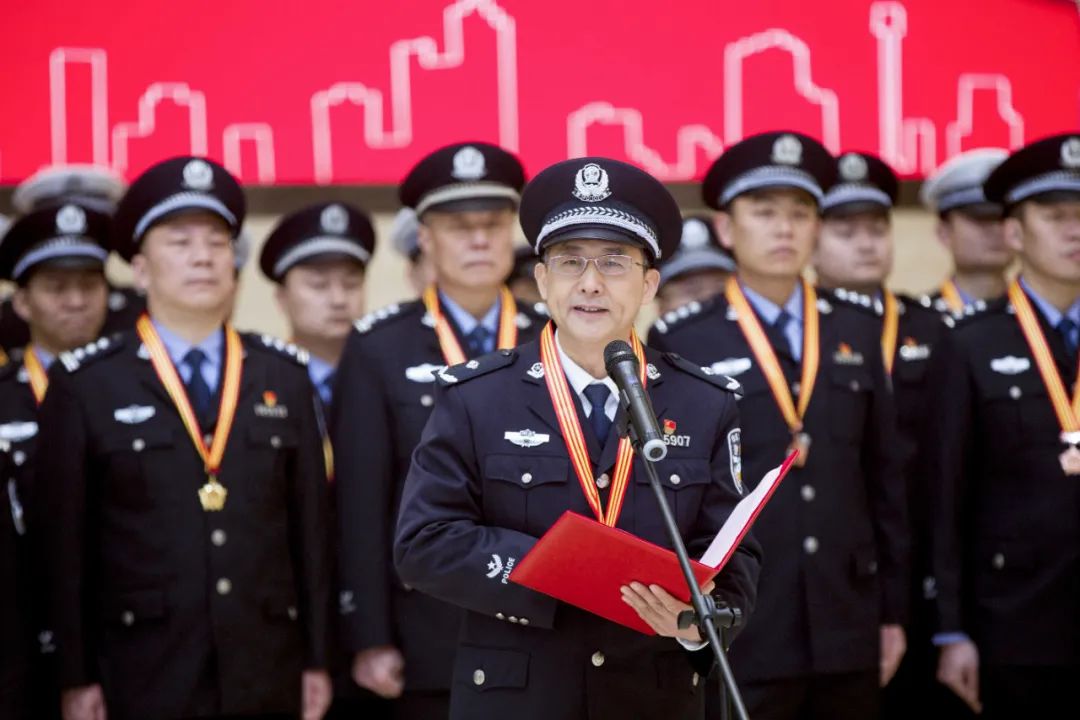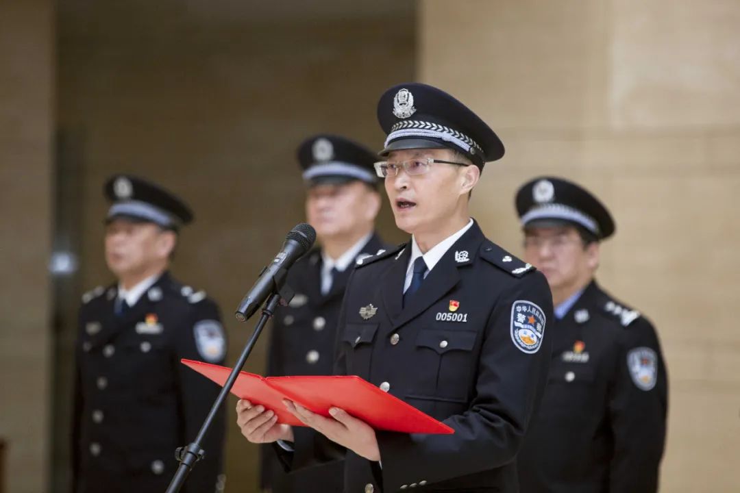仪式现场,从警10年的民警代表高崇升和从警40年的民警代表徐水平先后根据各自从警经历,深情发言,表达了公安民警扎根警营、矢志不移的壮志豪情。