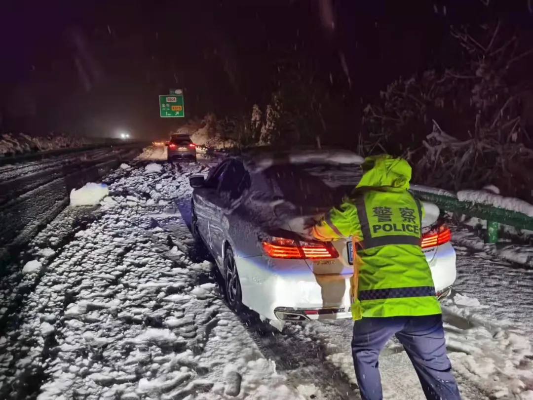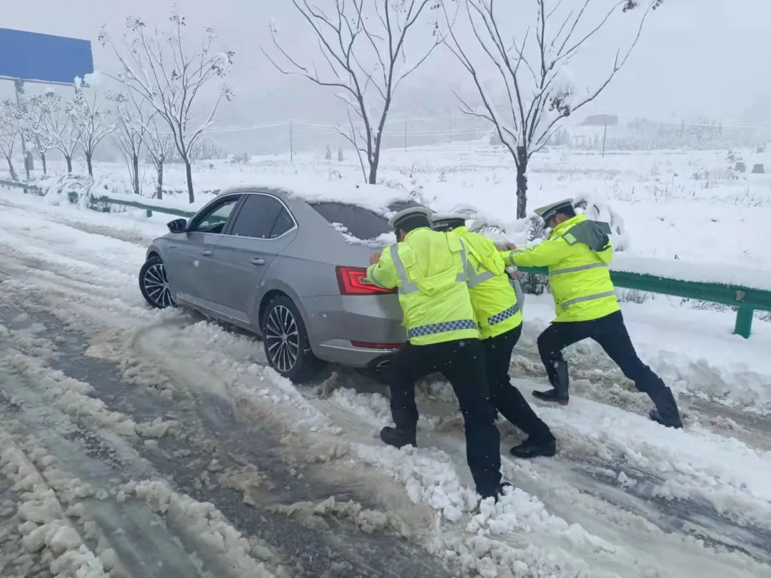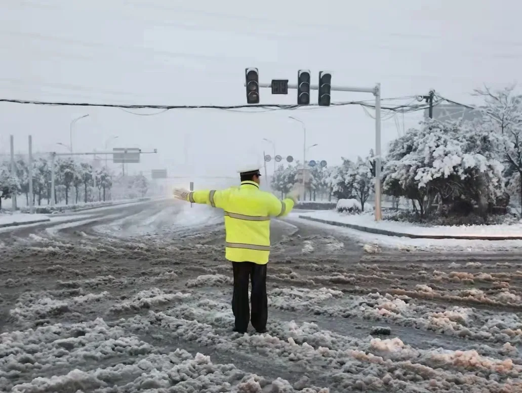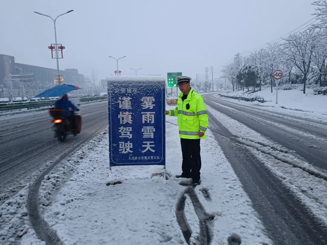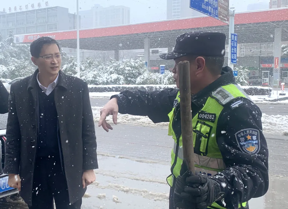 上路疏导行人和车辆,全力以赴确保道路交通安全畅通,适时向过往车辆驾驶员讲解降雪天气安全行车方法,同时利用手机短信、微信、微博等,编发各类提示性、告知性交通安全和天气预警信息,提醒大家注意交通安全。