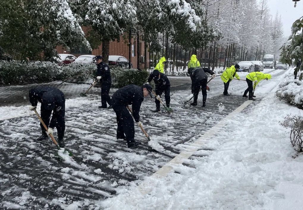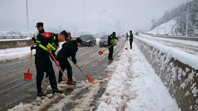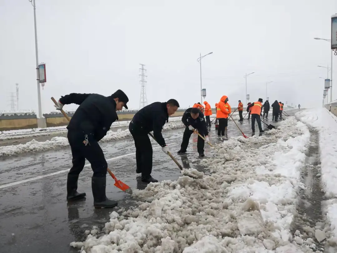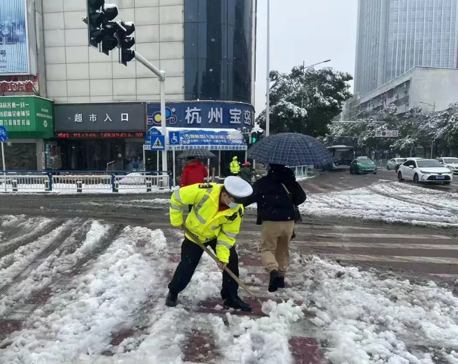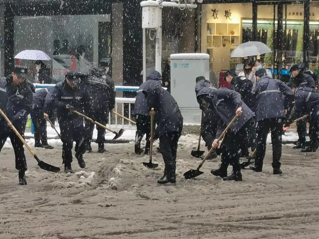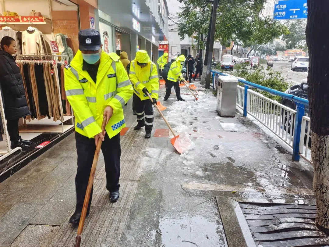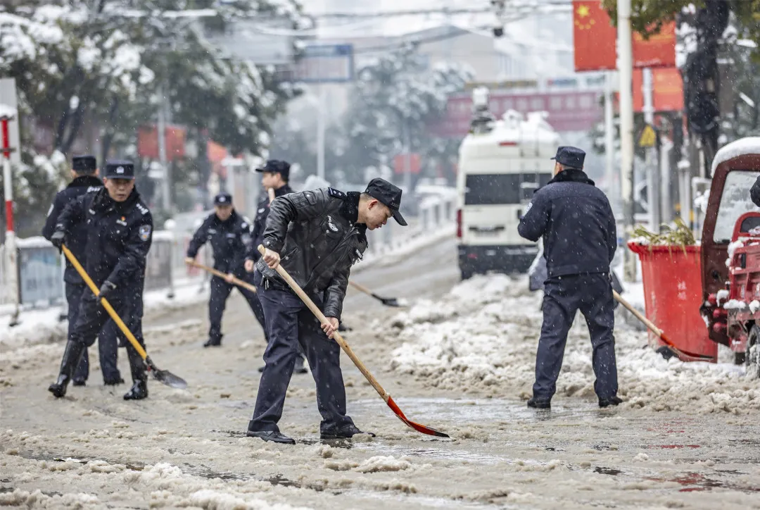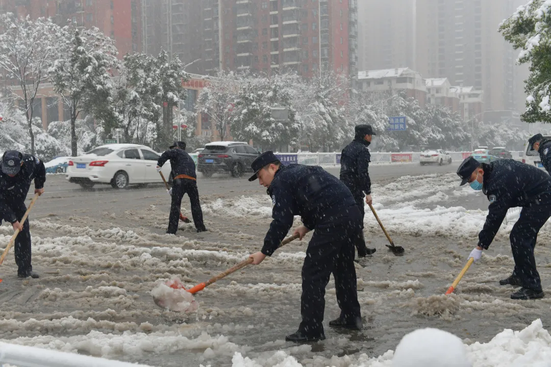 黄石港分局全体民辅警以风雪为令,在主要领导的带领下,战风雪、保民安,分赴辖区各主次干道、背街小巷等清理道路积雪,疏堵保畅,全力保障群众安全出行。