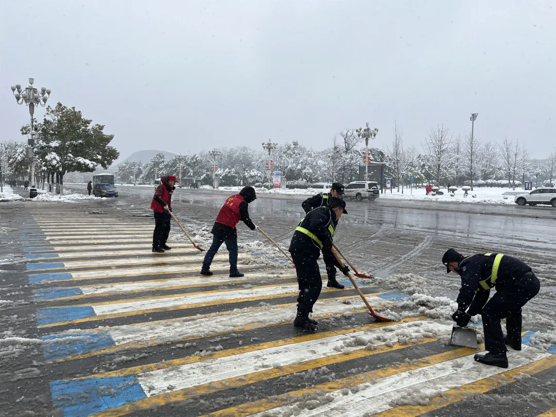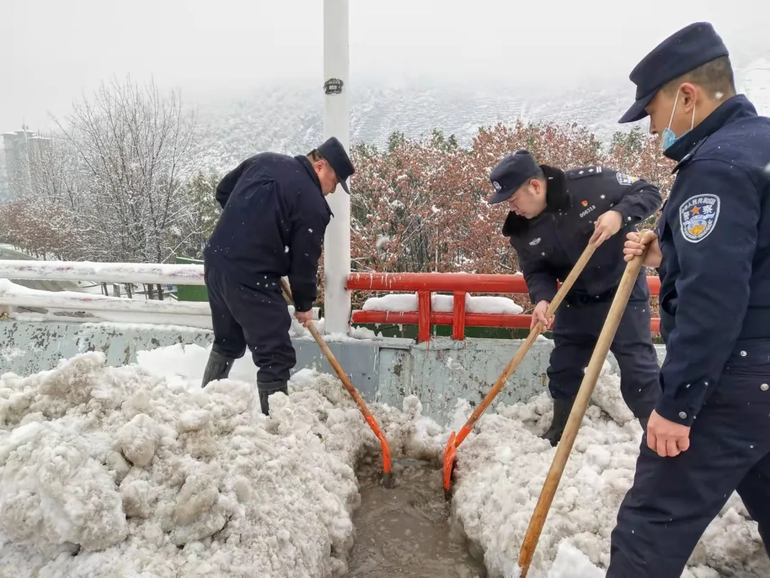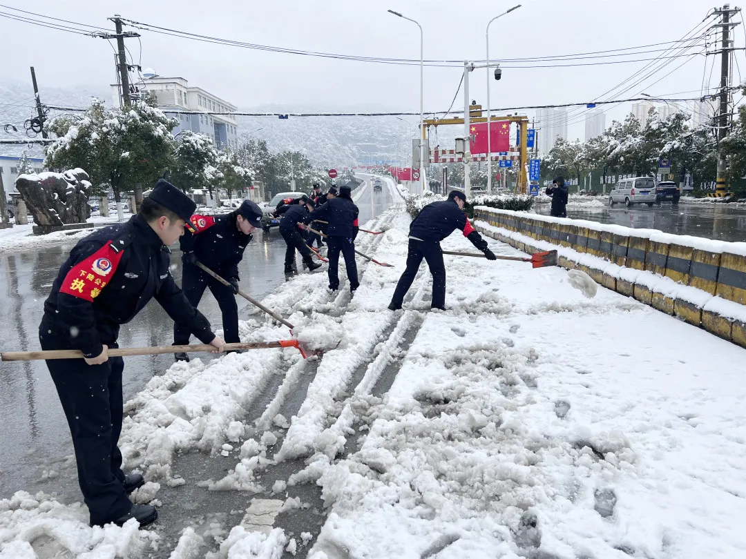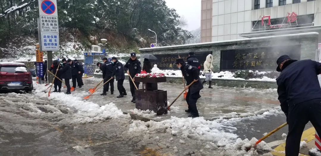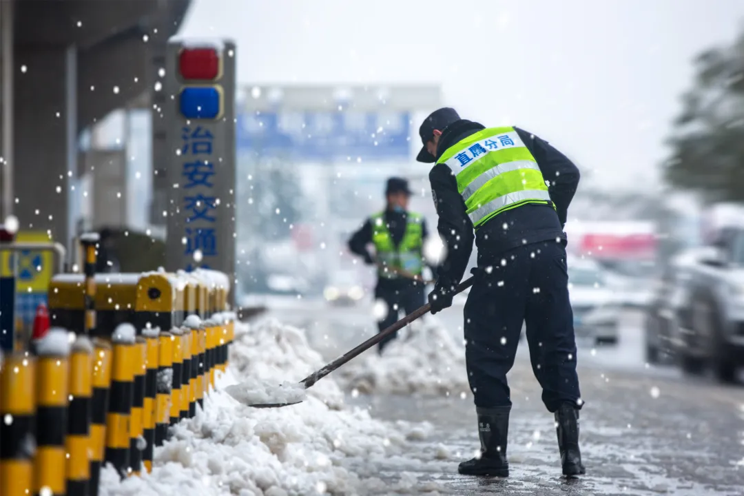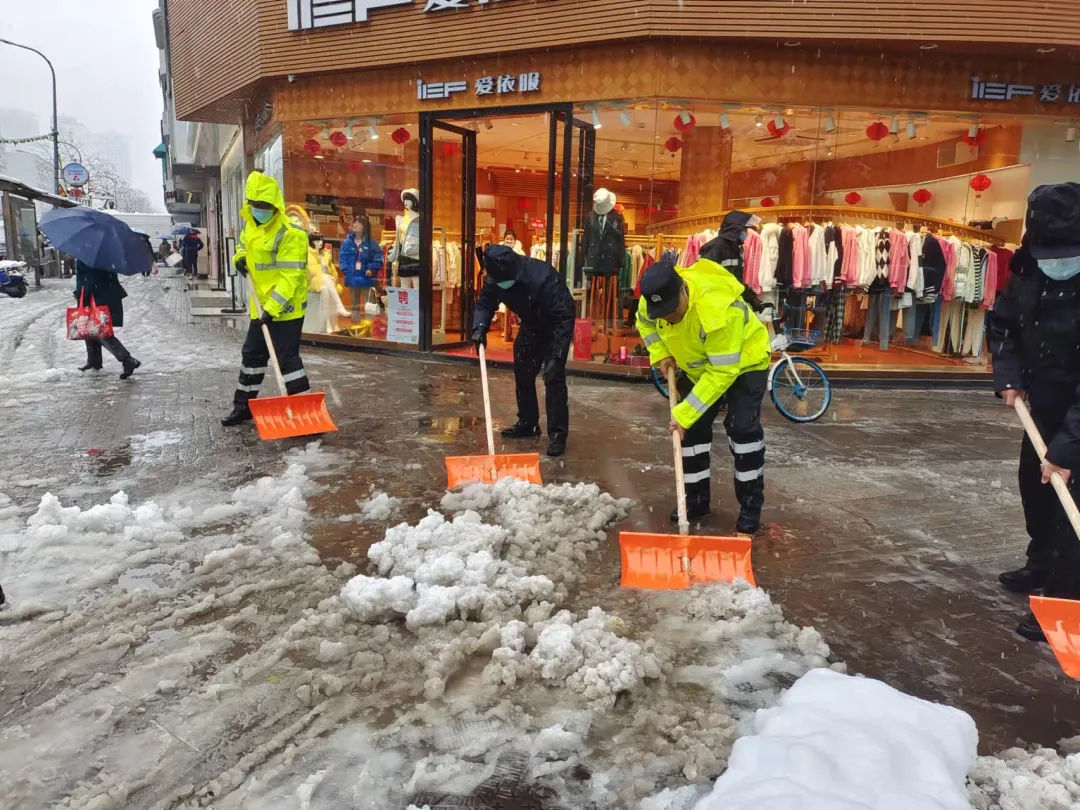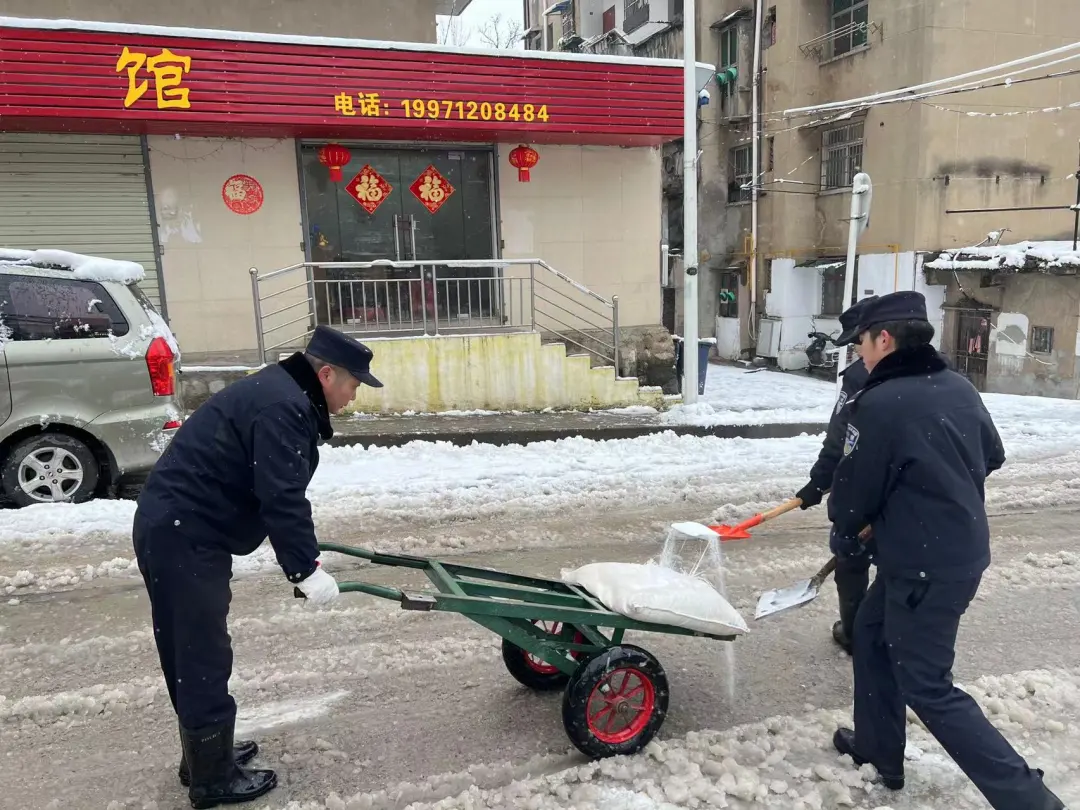 黄石港分局全体民辅警以风雪为令,在主要领导的带领下,战风雪、保民安,分赴辖区各主次干道、背街小巷等清理道路积雪,疏堵保畅,全力保障群众安全出行。