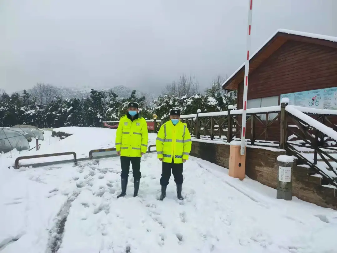 暴雪不断,景区山路危险重重。阳新县仙岛湖风景区临时封闭,阳新县公安局交警大队民警对因积雪压垮电线、较大树木的路线,及时进行交通管制或临时封闭,并协调电力等部门,尽快恢复交通,确保过往车辆行车安全。