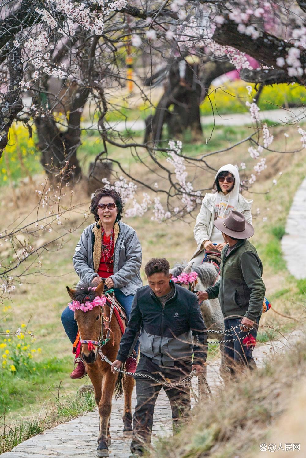 游客在林芝市嘎拉村体验马背观花。图片来源 新华社游客在林芝市嘎拉村体验马背观花。图片来源 新华社