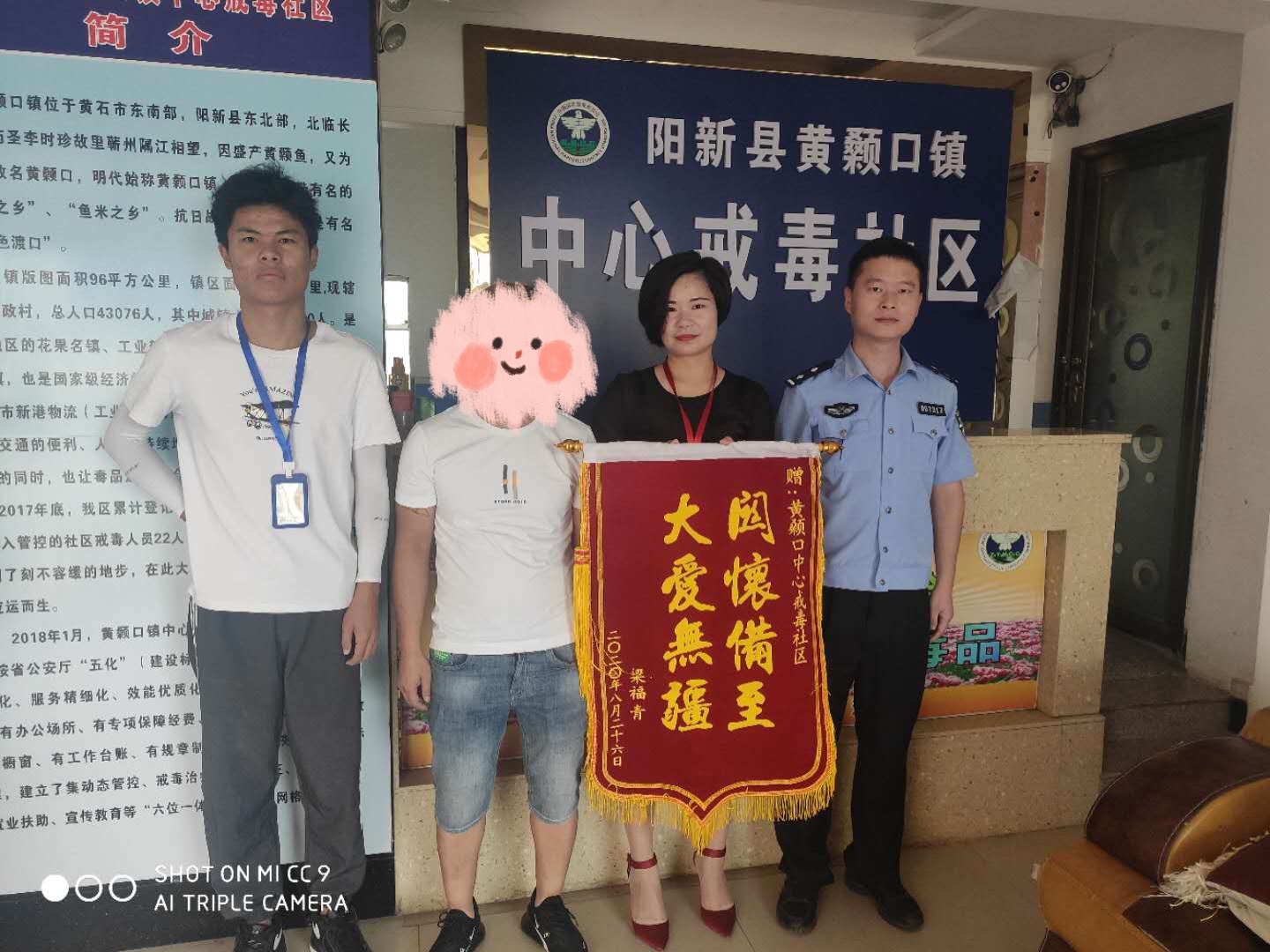 8月28日,黄颡口镇戒毒中心社区社戒人员梁xx为中心戒毒社区机构送上锦旗,用“大爱無疆,闽懷備至”衷心感谢黄颡口中心戒毒社区工作人员的真挚关心和热心服务。从思想上和精神上对我的帮助,让我对生活有了信心,千言万语全在这面锦旗里。