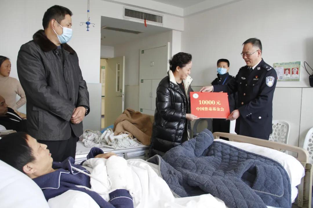 1月8日,省禁毒办常务副主任、省公安厅禁毒总队主要负责人祝革鹏同志一行来到黄石大冶市,在黄石市禁毒办主任、市公安局副局长张昌胜的陪同下,看望慰问了因公受伤的一线禁毒民警及家属,同时送上慰问金和节日的祝福。