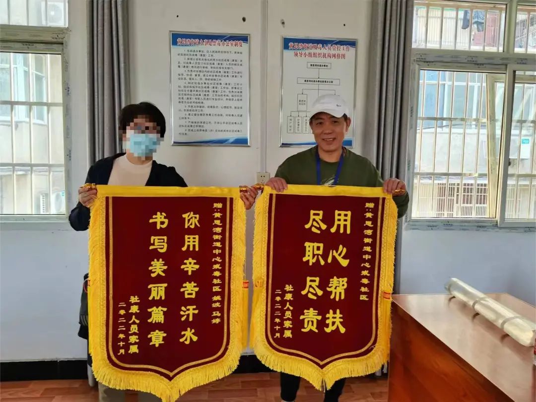 如今,一家人非常开心,易女士既高兴又感动,一定要送面锦旗以表谢意,于是定做了两年锦旗,一大早就赶过来送到黄思湾中心戒毒社区,表达对禁毒社工的感激之情。