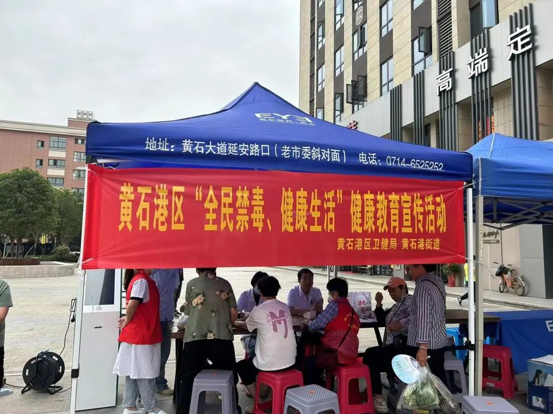 活动现场专家通过义诊的方式向群众传播爱护眼睛的重要性,学习保护眼睛的方法,引导群众掌握正确的缓解眼睛疲劳的眼保健操。黄石港社区卫生服务中心的医务人员为群众做血压、血糖、心电图筛查。禁毒社工通过现场讲解、设立服务台、发放禁毒宣传折页等方式,向居民介绍毒品的种类、毒品及滥用麻醉药品精神药品的严重危害性,号召广大群众远离毒品,自觉抵制毒品,并将禁毒知识带入家庭,不让家庭成员沾染毒品,共护平安家庭。