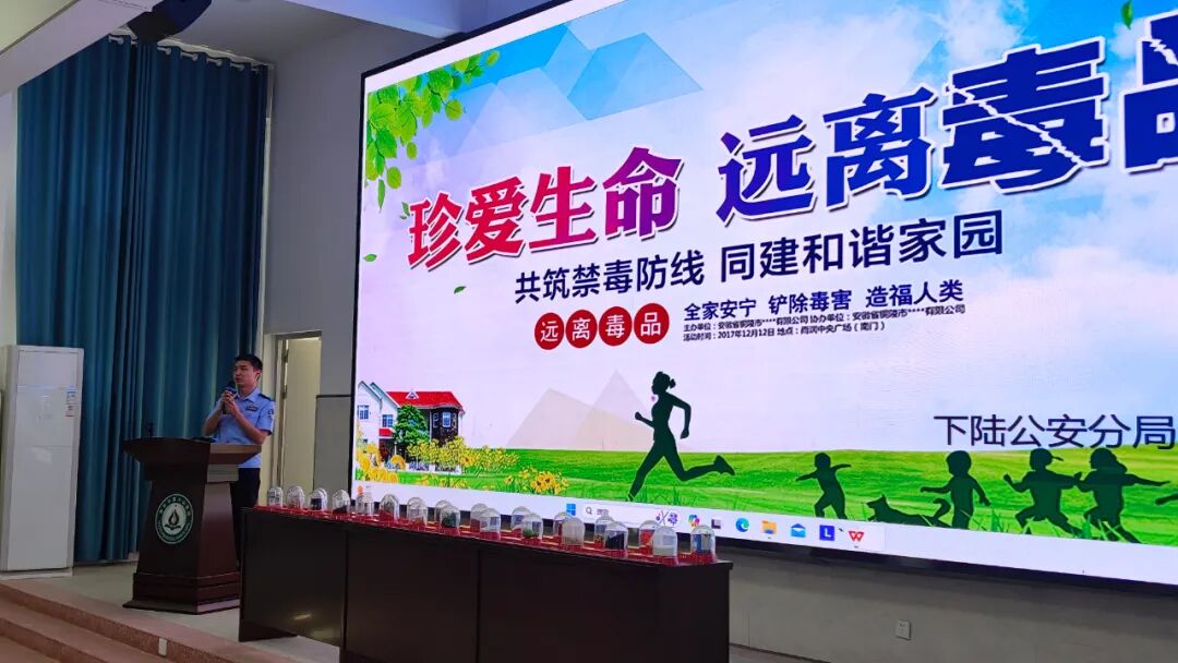 图文并茂、案例警示、模型展示……在墨斗山学校的大礼堂里,一堂生动的禁毒宣讲课正在进行。5月14日,下陆公安联合墨斗山学校共同开展了“大手牵小手”科普报告暨青少年毒品预防宣传教育活动,校内200余名师生参与。