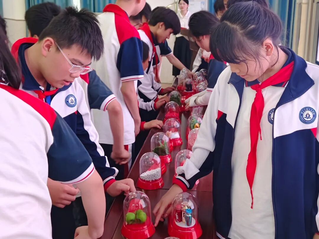 紧接着,游侠通过仿真毒品模型展示,重点向大家科普了新型毒品伪装性强的特点,比如上头电子烟实际上是添加了依托咪酯、合成大麻素类物质的电子烟,一旦吸食极易成瘾。随后,游侠邀请师生们上台近距离观摩毒品仿真模型,他们热情高涨,纷纷指着模型提问,游侠一一为大家答疑解惑。