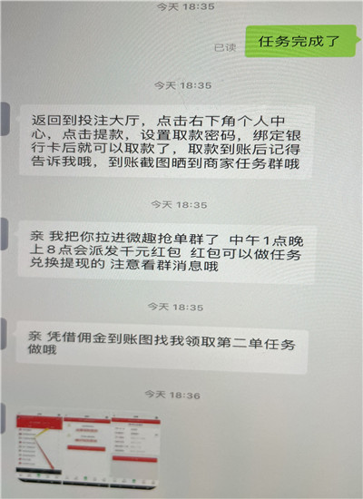 4月19日晚,23岁的戴女士通过微信添加了一个陌生网友,对方将她拉进一个群,让她关注一个公众号,并在群里发信息,让她下载一款app,称可以靠抢单赚钱。