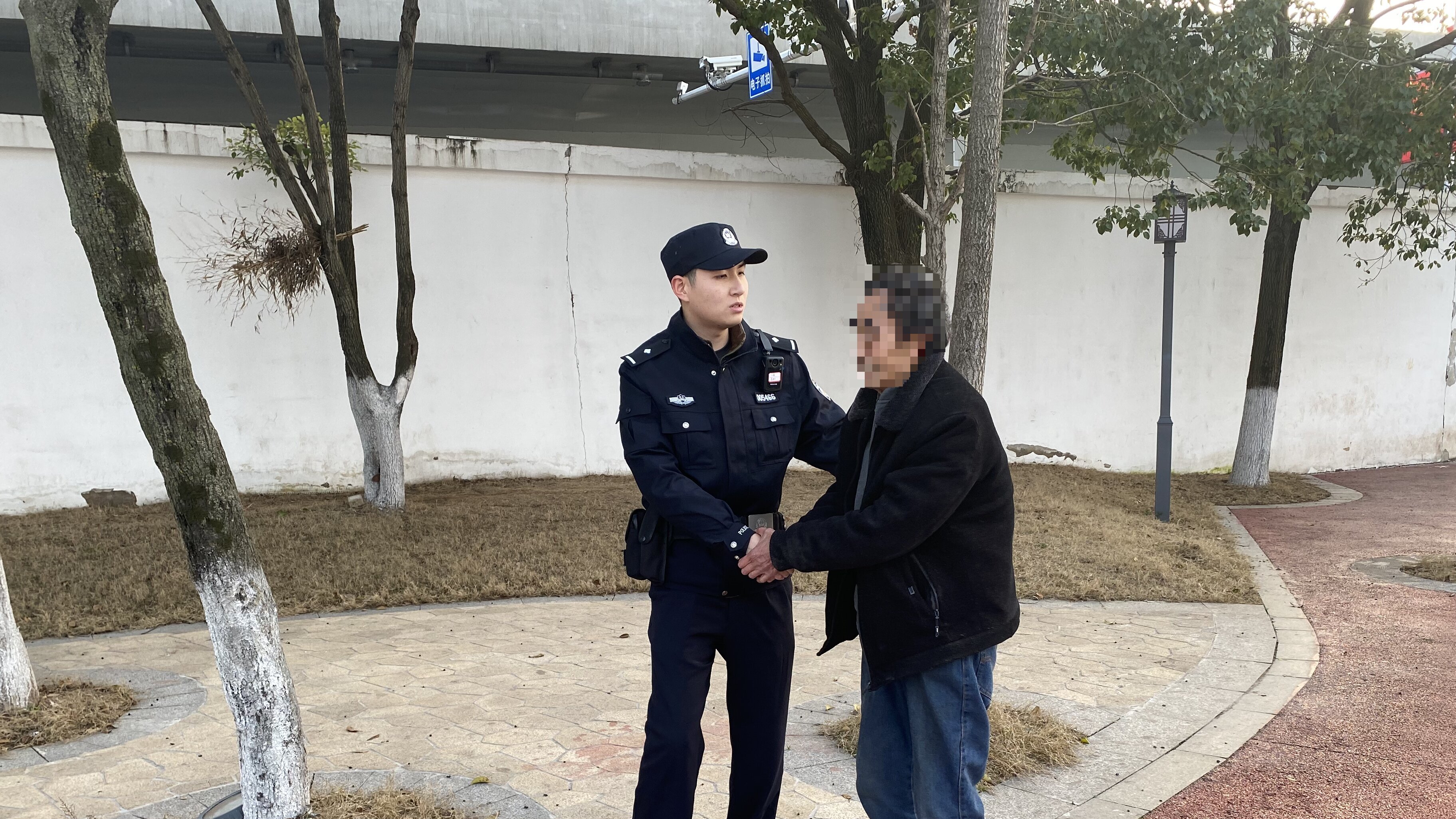 5分钟后,民警将江爹爹带回安全地方。临走时,江爹爹对民警敬礼,不停地表示感谢。