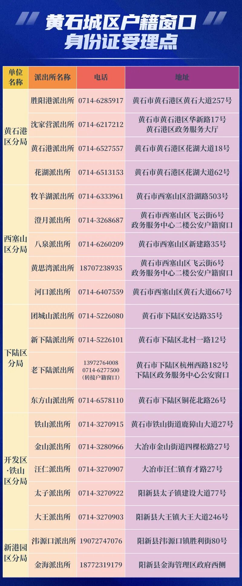 ▲自助办或上门办:市公安局在下陆万达等地设置了自助身份证办理服务点,24小时对外提供办证服务。对于老弱病残等行动不便居民,市公安局推出了预约“上门办”服务机制,有需求的群众可以拨打就近的派出所电话预约上门服务。