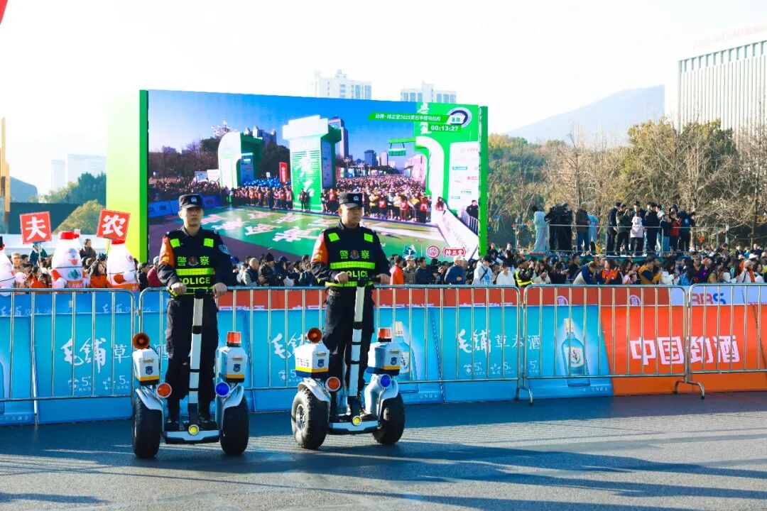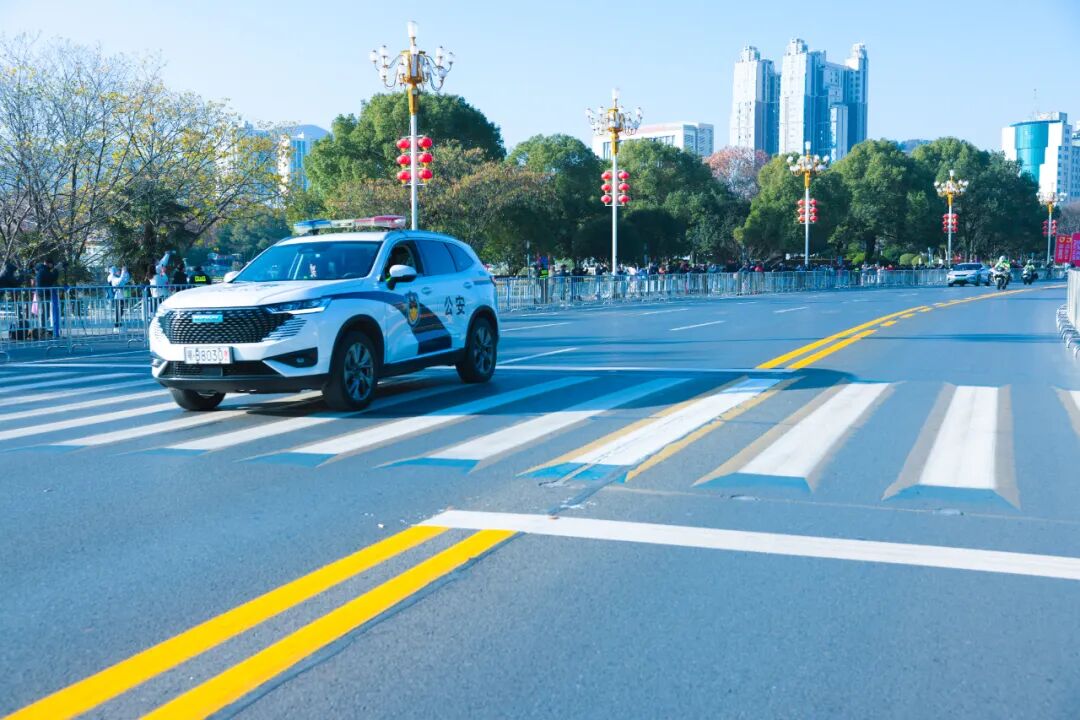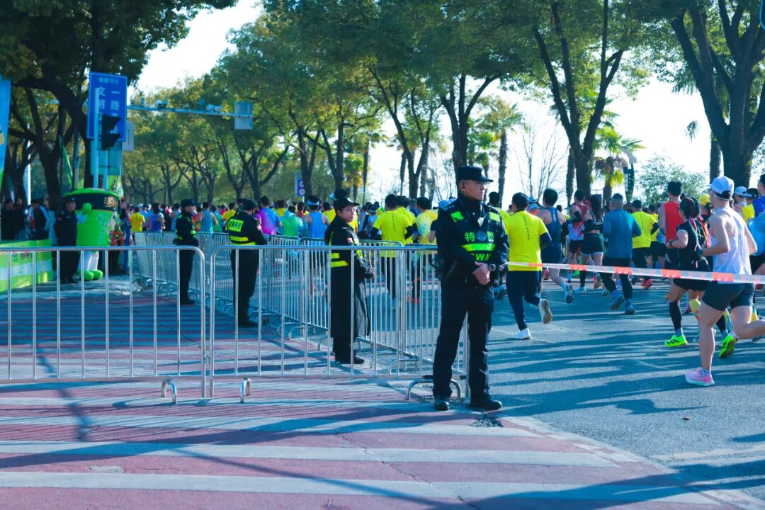 开发区·铁山区分局铁骑队员在赛道沿线执勤