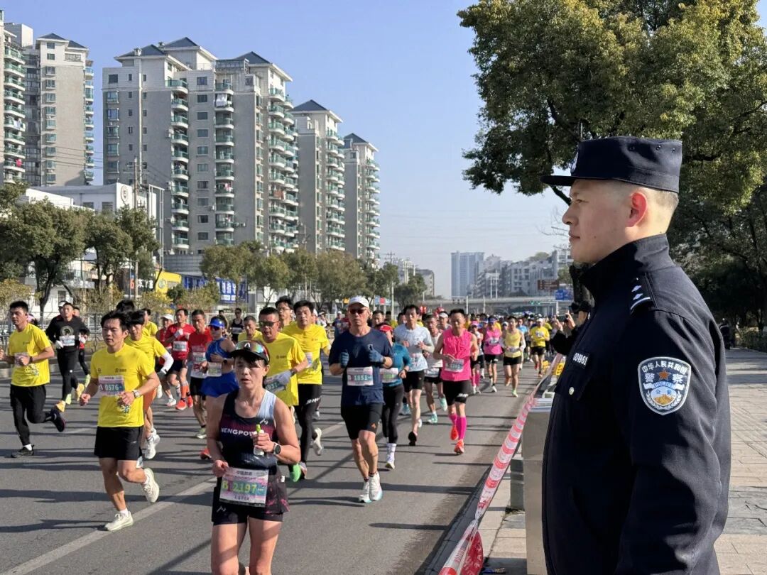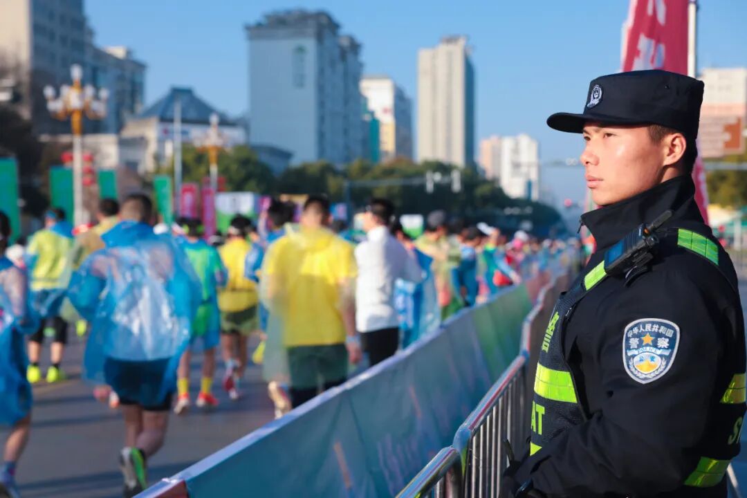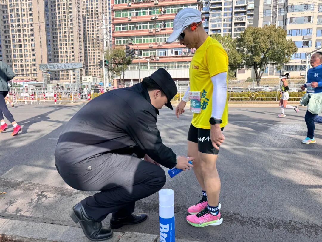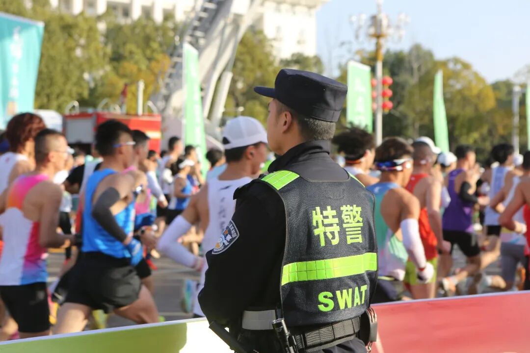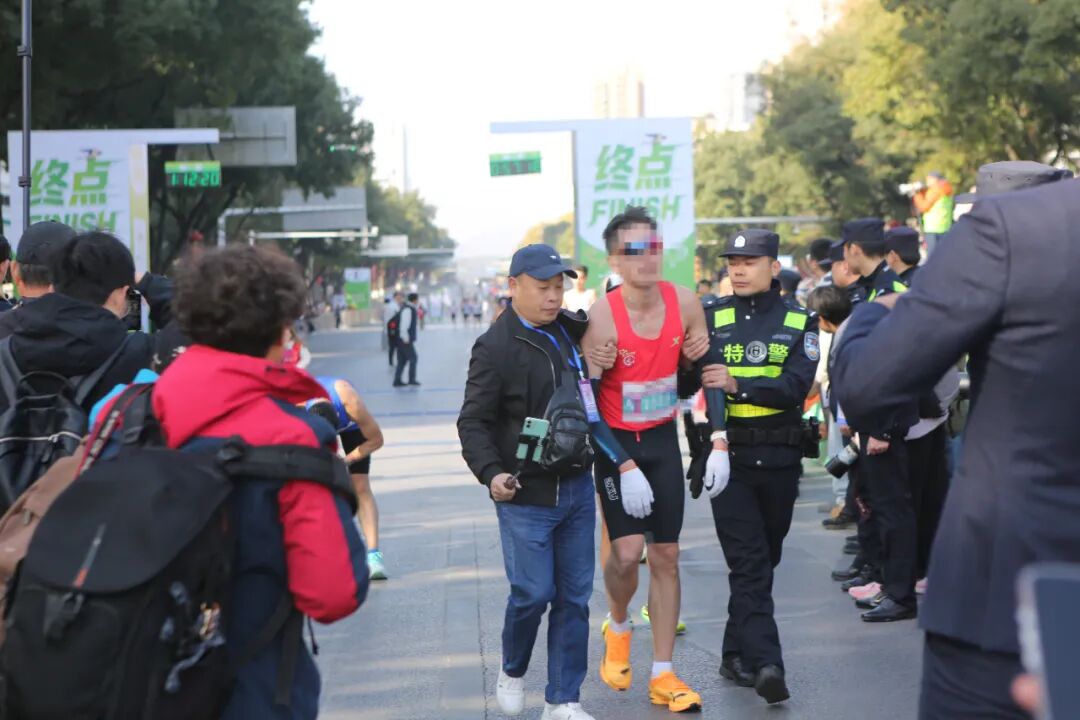 反恐特警支队民警帮助搀扶身体不适的跑友