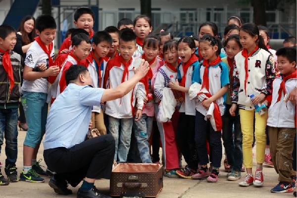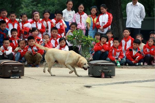 “六一”儿童节将至,为关爱儿童成长,5月24日上午,黄石市公安局为来自该市疗养院小学的70余名小学生送上了一个特别的节日礼物:邀请他们走进该局刑侦支队警犬训练基地,了解警犬种类、训练科目等相关知识,在提高小朋友警务知识的同时丰富其课外生活。