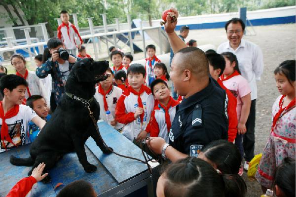 此次活动,有效提高了孩子们的警务知识,丰富了他们的课外生活。活动结束时,孩子们还将标准的少先队礼献给了警犬训练大队的民警。(王佳 杨文涛/文 吴刚/摄)