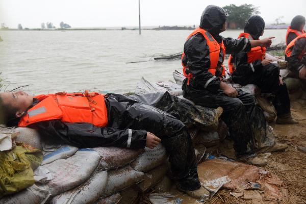 吕凡是该局治安大队的一名协警,7月4日开始,他和战友一起,连续两天在该区林家湖大堤上抗洪抢险。