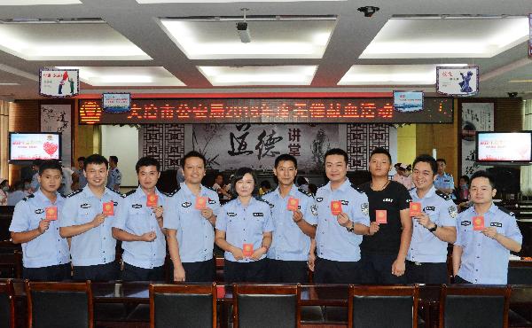 现场,医务人员讲解完献血基本常识和相关注意事项后,民警、文职及协警队员详细填写了《义务献血登记表》,依次完成献血前的身体检查、血型化验等工作,有条不紊的完成无偿献血。