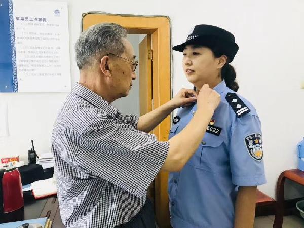陈燕的父亲帮其整理警服 通讯员 李抒阳 摄