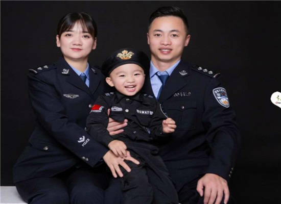 深受李璠夫妇感染,儿子从小就立志当警察,所以每次视频,说完再见,他就会举起右手,像模像样地敬个礼。每每这时,李璠和胡明艳也会以“礼”相待。