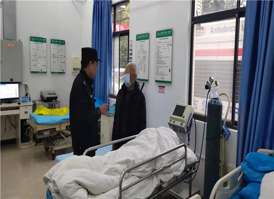 急救人员到场后,民警陪同医护人员将老人送往医院救治,经诊断,老人无生命危险。与此同时,民警也找到了老人女儿和老伴信息,通知家属到医院照看。