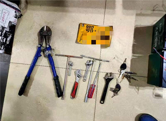 抓捕过程中,男子十分狡猾,扔下作案工具和赃物逃脱,民警现场查获被盗电瓶25个,作案工具若干和电瓶车一辆。