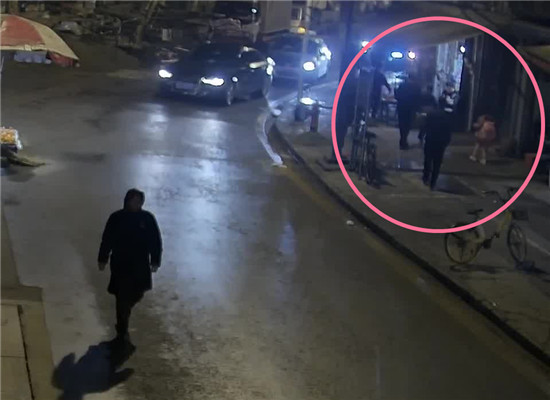 小女孩看见有人朝她走来有些害怕,躲着朱续传、甘训清快步往前走。