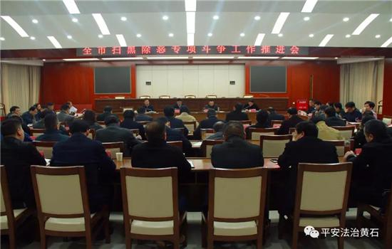市委政法委副书记、市综治办主任、市扫黑办主任蔡小峰通报了今年以来全市扫黑除恶专项斗争工作进展情况。市扫黑办各专项工作组分别汇报近阶段工作情况。市政协副主席、市委政法委常务副书记、市维稳办主任、市委法治办主任王新华安排部署了全市扫黑除恶专项斗争宣传发动工作。